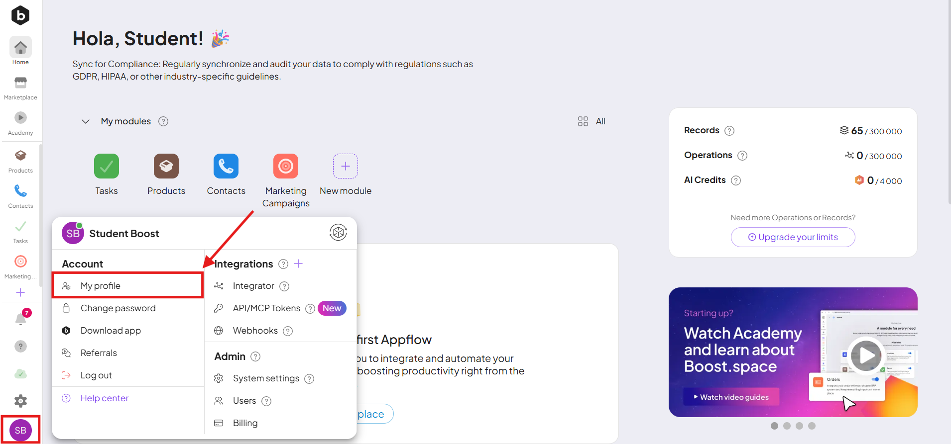 Boost.space offers flexible settings that both usersCan use the system on a limited basis based on the rights assigned by the admin. and adminsA user role in Boost.space with comprehensive system access, including the ability to add, remove, and manage all system levels. Admins can oversee all users, configure system settings, create custom fields, and manage modules and addons. Admin can also access Integrator and manage automations. can adjust to personalize their experience. Whether you want to update personal information or change system settingsMain settings of the Boost.space system that is accessible only by admins. You can change a variety of things here (custom fields, actions and triggers, design, etc.), the process is simple and intuitive. Below is an overview of the available options based on your role.
