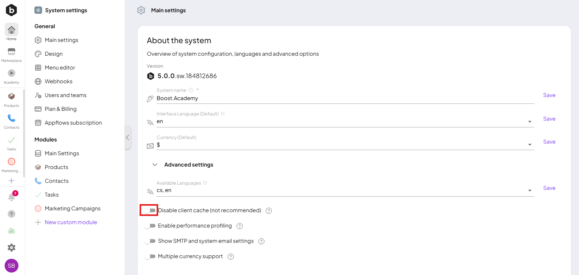 Boost.space offers the ability to manage modules and addons directly from the system settings. For more information, visit the Modules and Addons page.