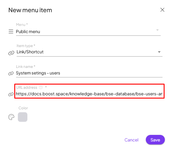 3. Paste the URL of the page you want to pin and save it.(Tip: You can use the link to documentation or any other frequently used page.)