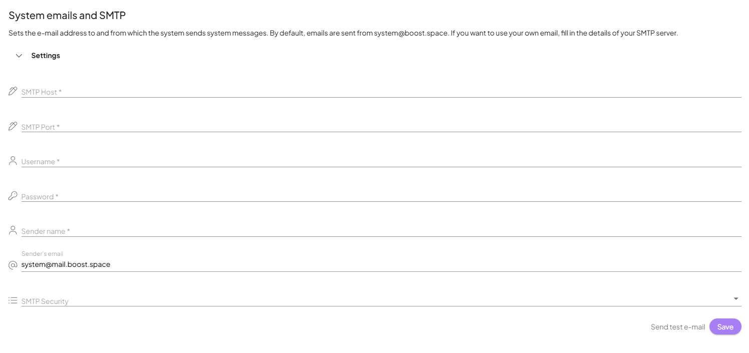 This article serves as a Boost.spaceA platform that centralizes and synchronizes company data from internal and external sources, offering a suite of modules and addons for project management, CRM, data visualization, and more. Has many features to optimize your workflow! general guide for setting up the e-mail address to and from which the system sends system messages. By default, emails are sent from [email protected]. If you want to use your own email, follow the guide on this page.