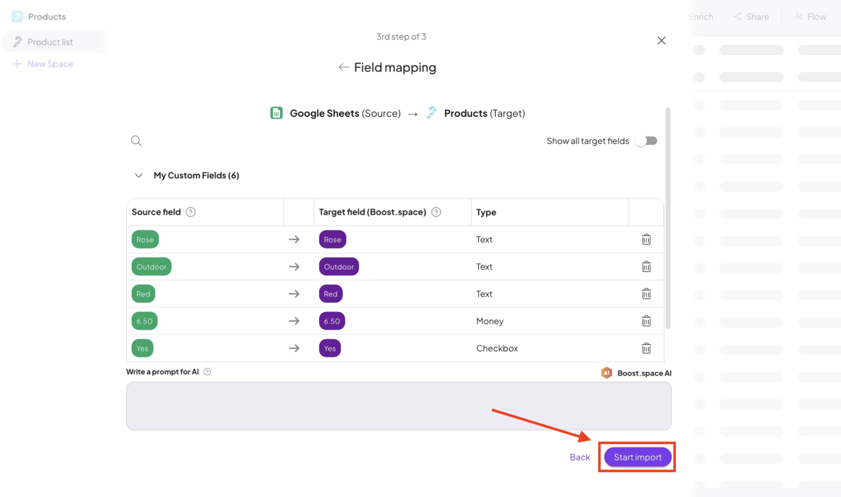 Once the mapping is complete, click Start Import.
