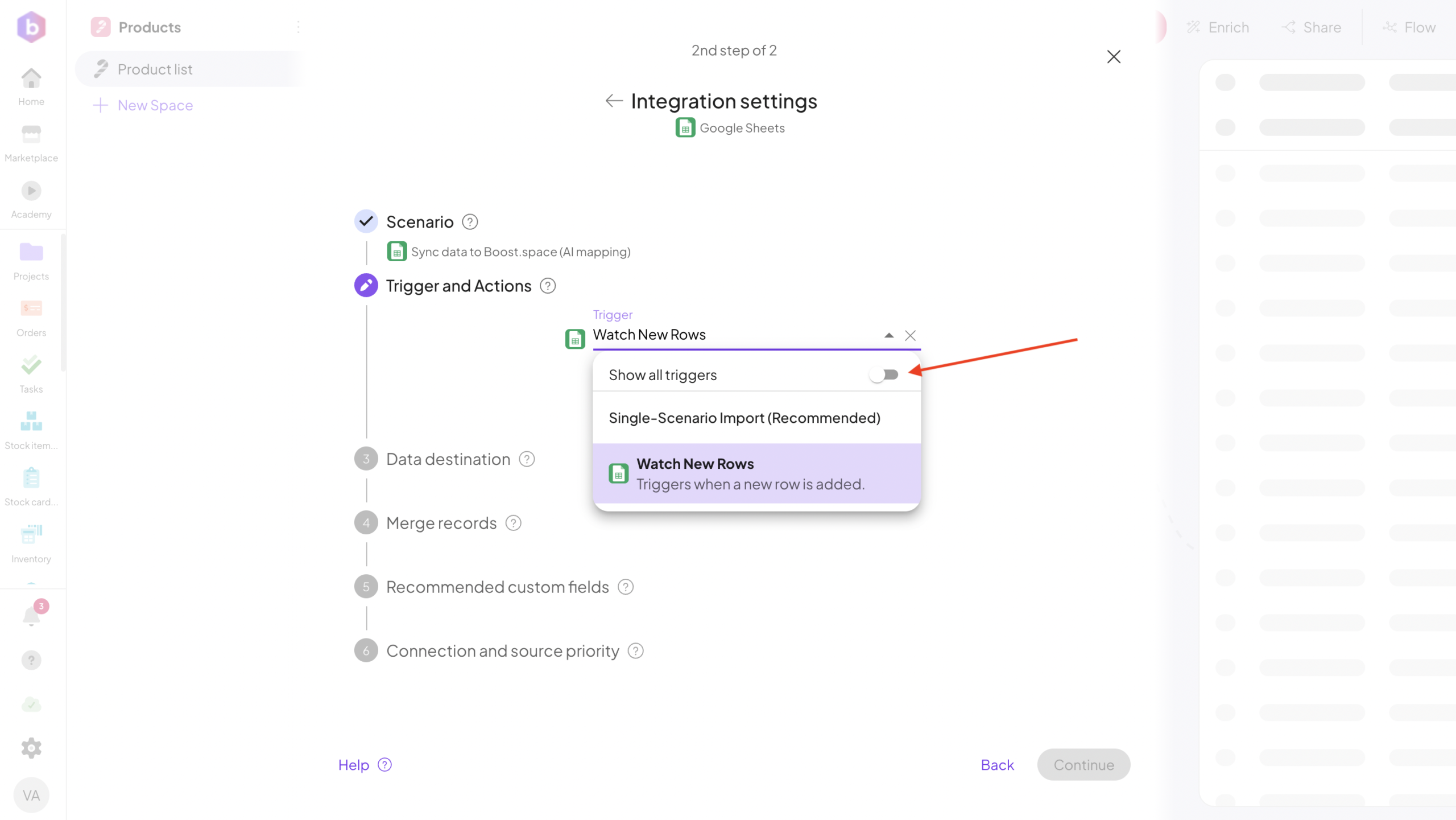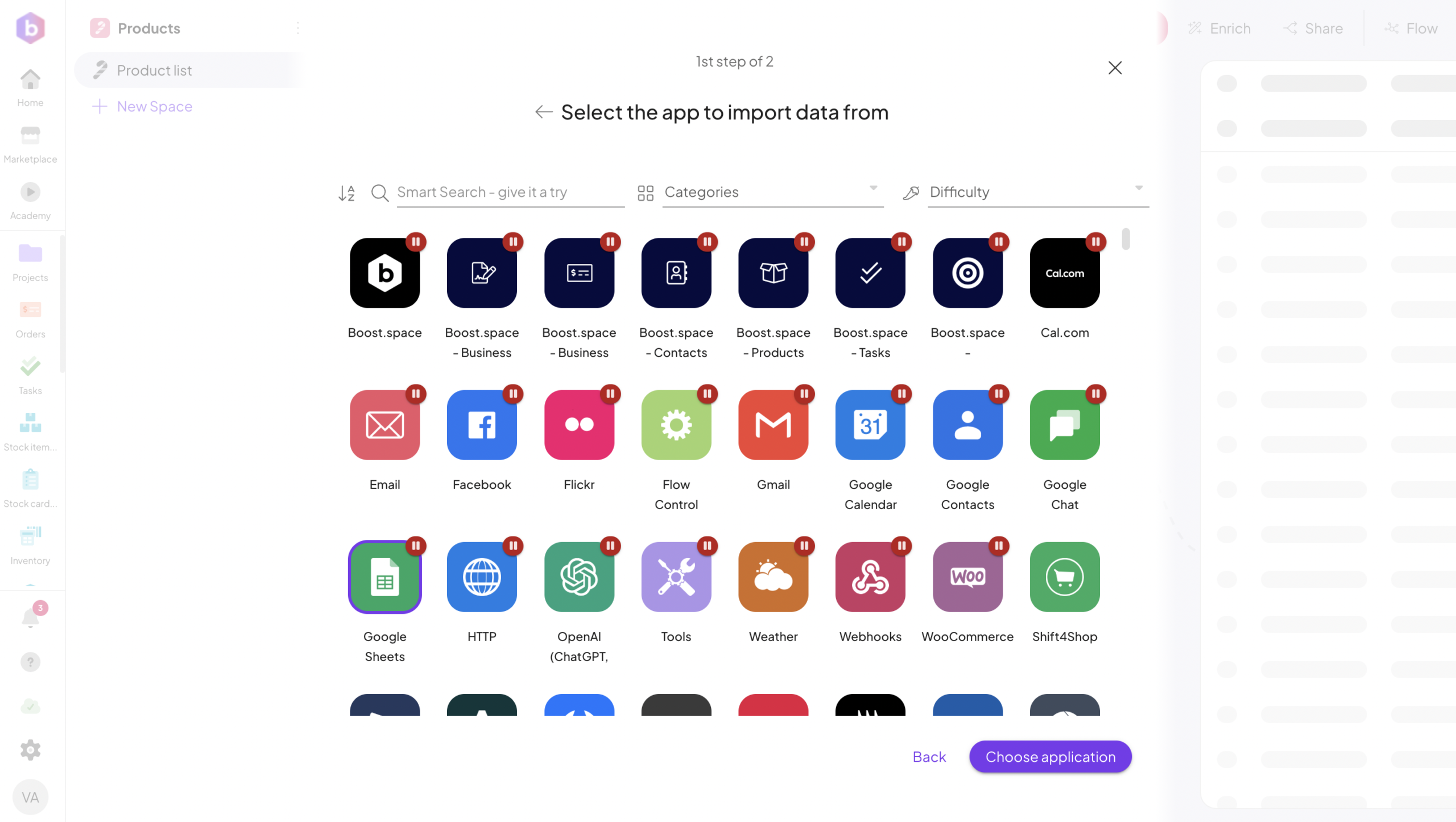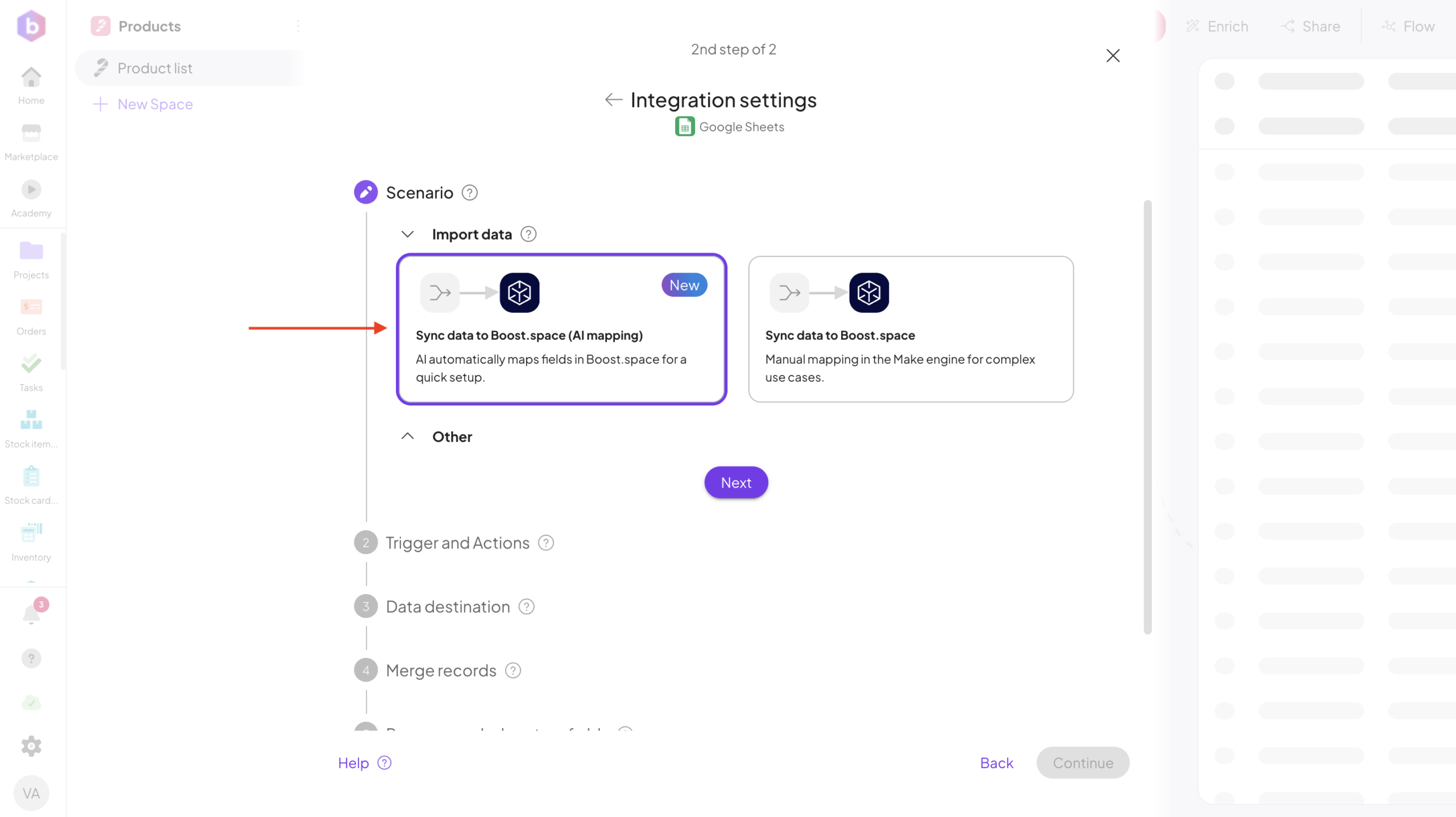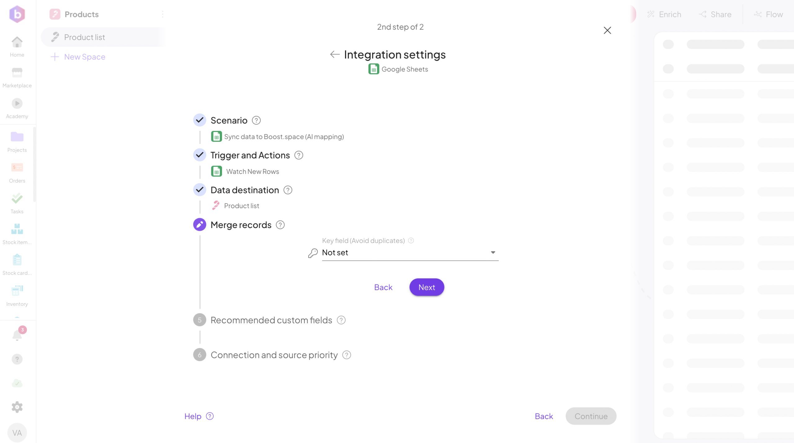Boost.space will begin importing data from the source tool.