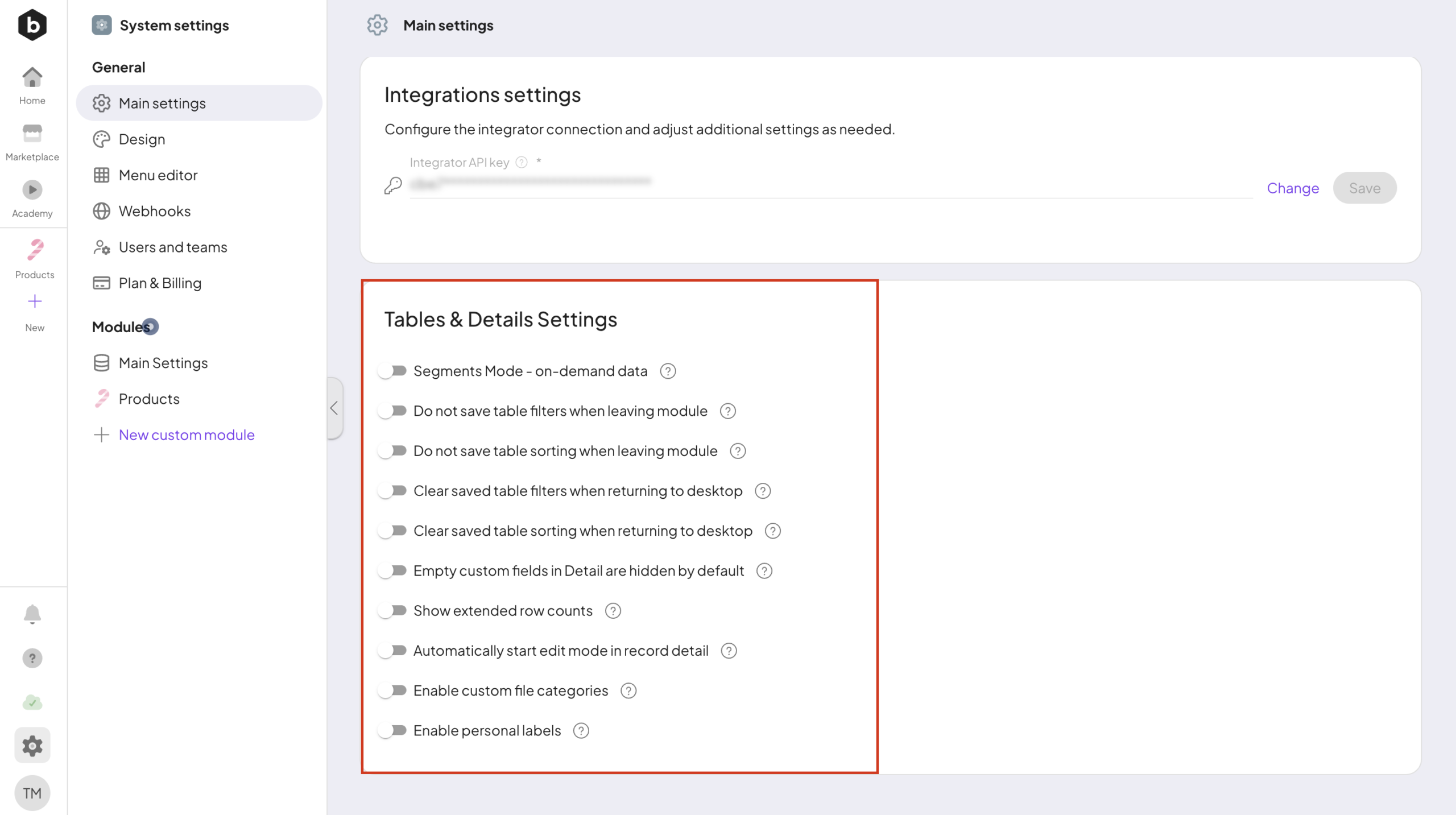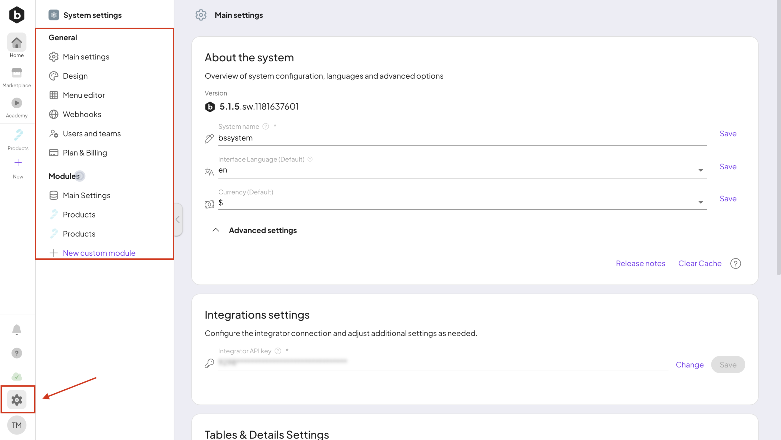 Boost.space offers the ability to manage modules directly from the system settings.