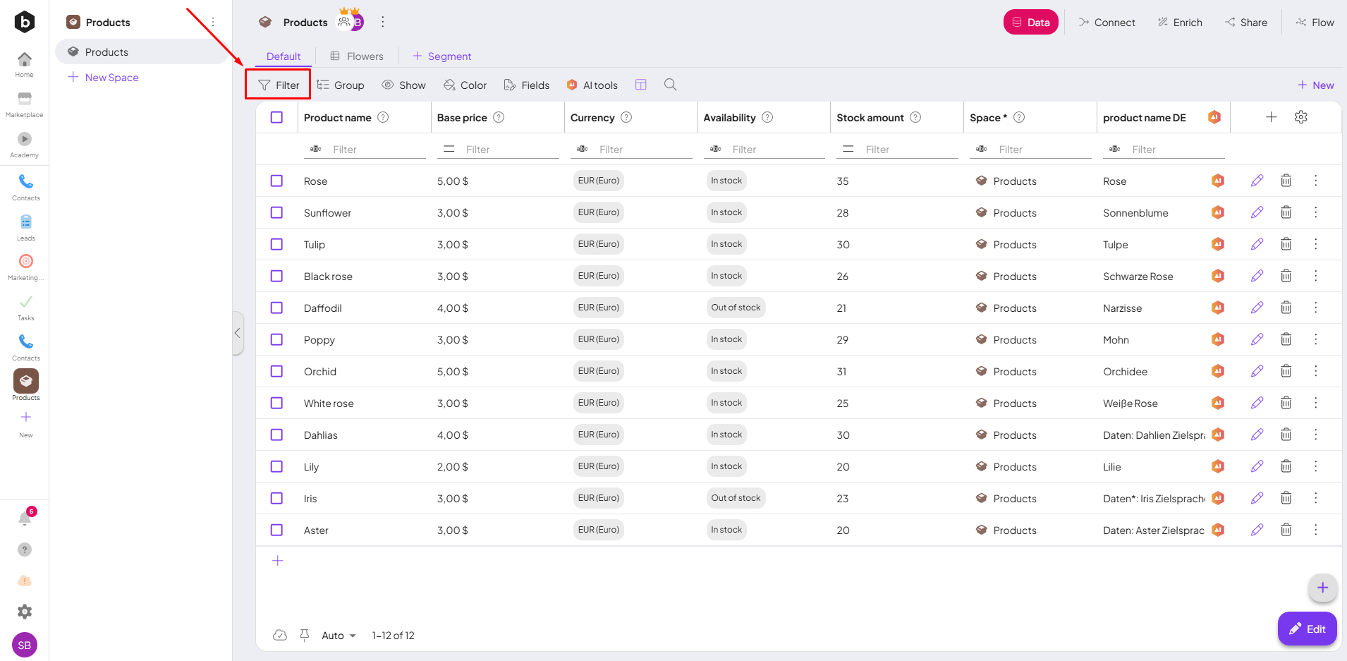 For easy navigation among a large number of records, you can use filtering. In most modulesa module is an application or tool designed to handle specific business functions, such as CRM, project management, or inventory. The system's modular architecture allows you to activate only the modules you need, enabling customization and scalability as your business requirements evolve., two types of recordIn Boost.space, a record is a single data entry within a module, like a row in a database. For example, a contact in the Contacts module or a task in the Tasks module. filtering can be applied.