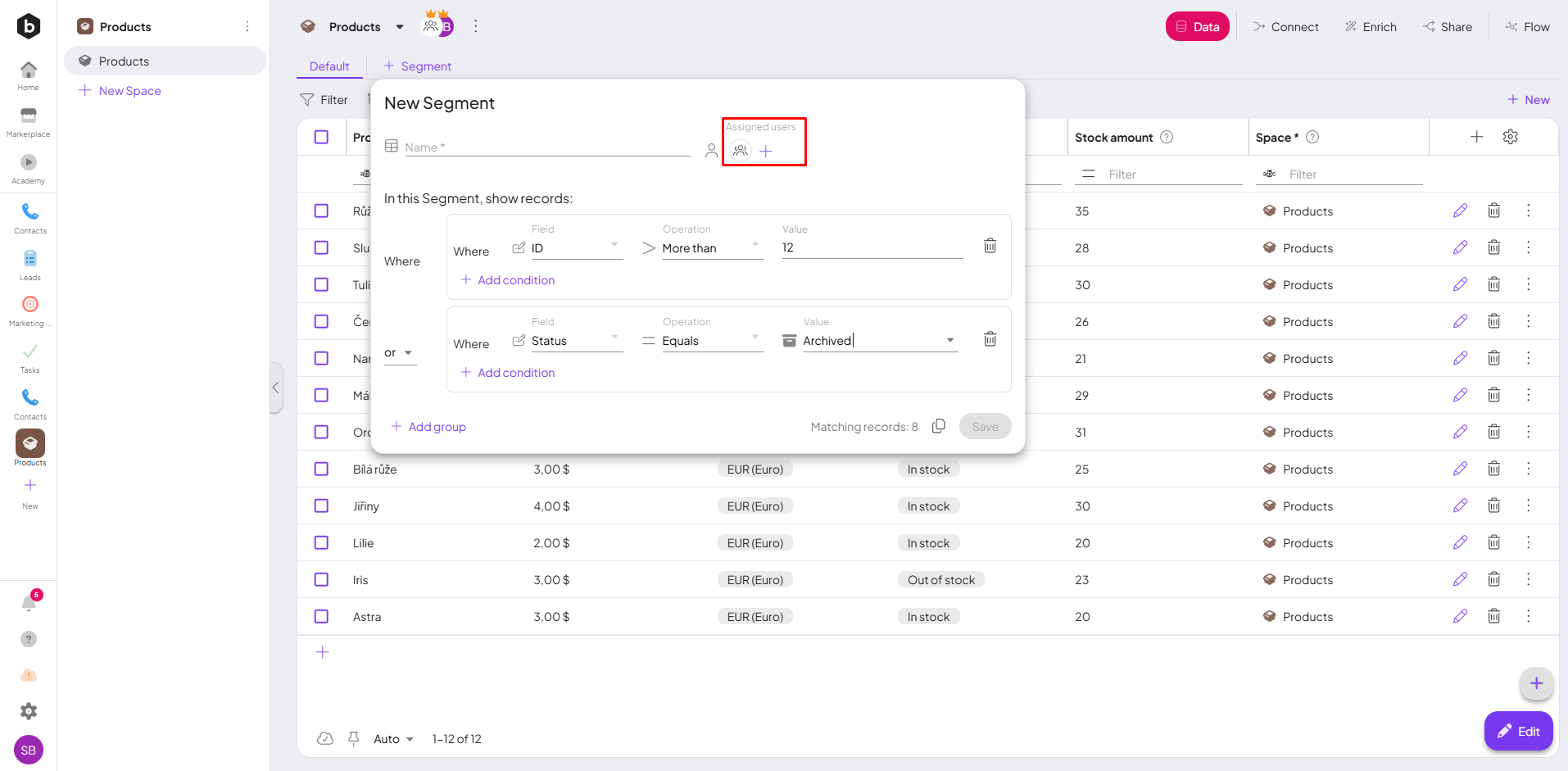 You can also assign users who will be able to view this segment, making it easy to share relevant data with the right team membersIn Boost.space, a Member is a role within a space that permits an individual to view and manage records using existing statuses and labels. Members cannot manage other members or modify space settings..