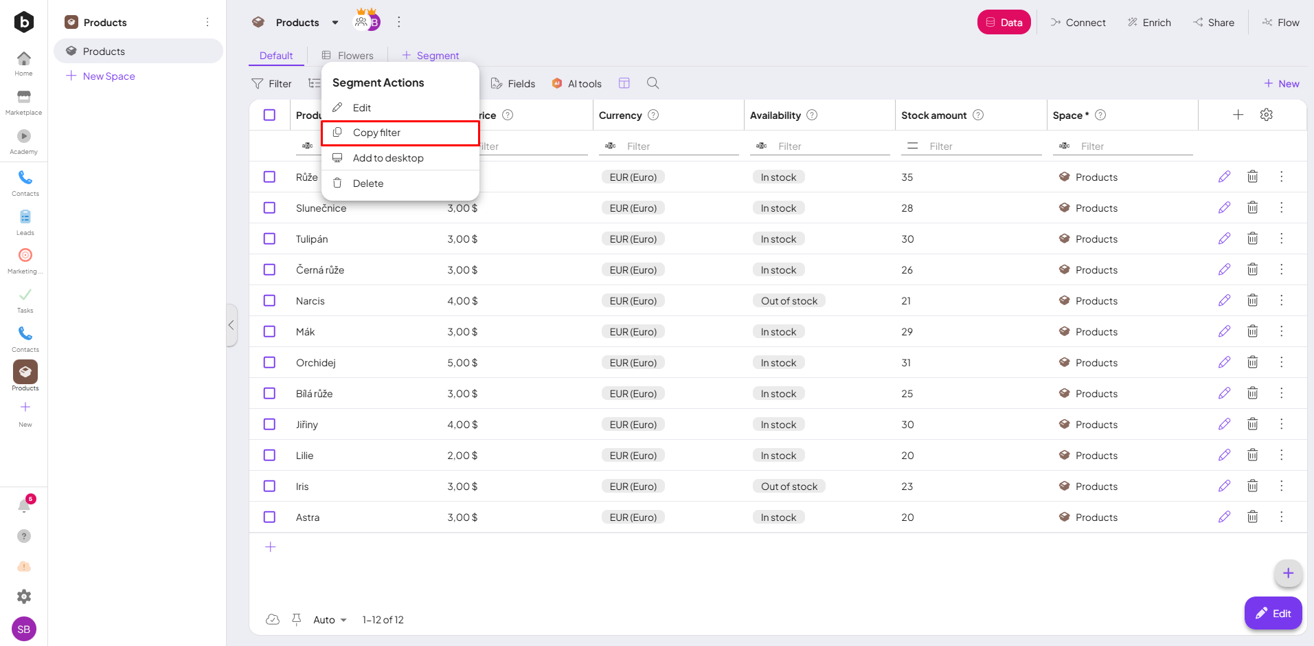 You can create multiple segments, each with its own filter. Boost.space keeps the last 5 opened segments in the local cache. If you open a sixth one, the oldest one is removed from the cache.