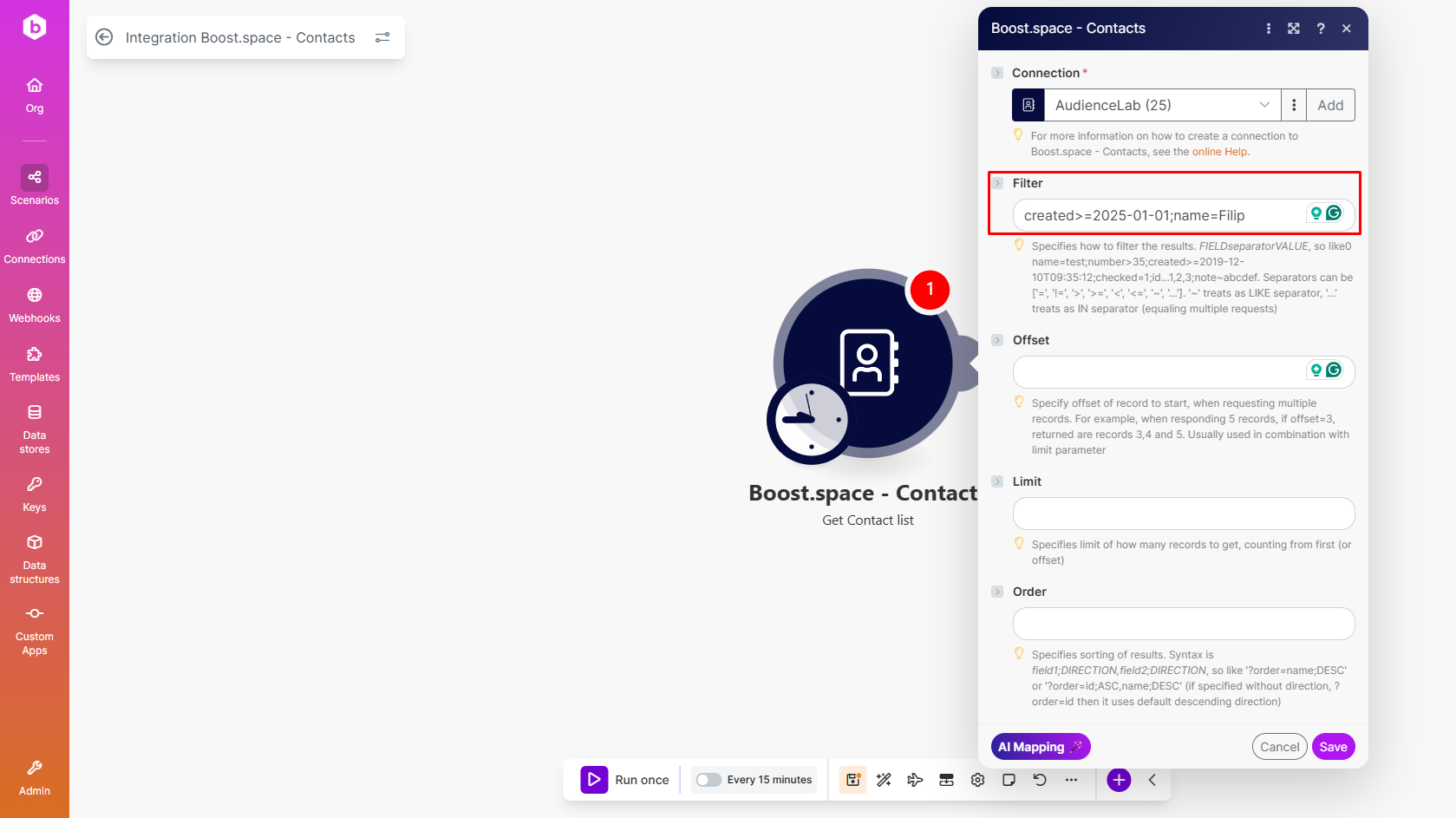 This copies the filter rules from the segment. You can then use this in other parts of Boost.space, like the IntegratorPart of the Boost.space system, where you can create your connections and automate your processes..