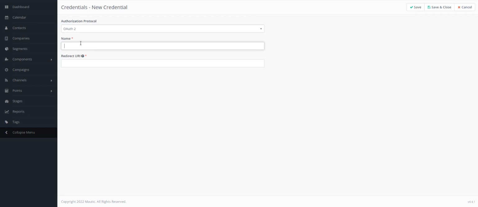 7. – Paste this URL into the “Redirect URI” field on the Mautic credentials configuration page.