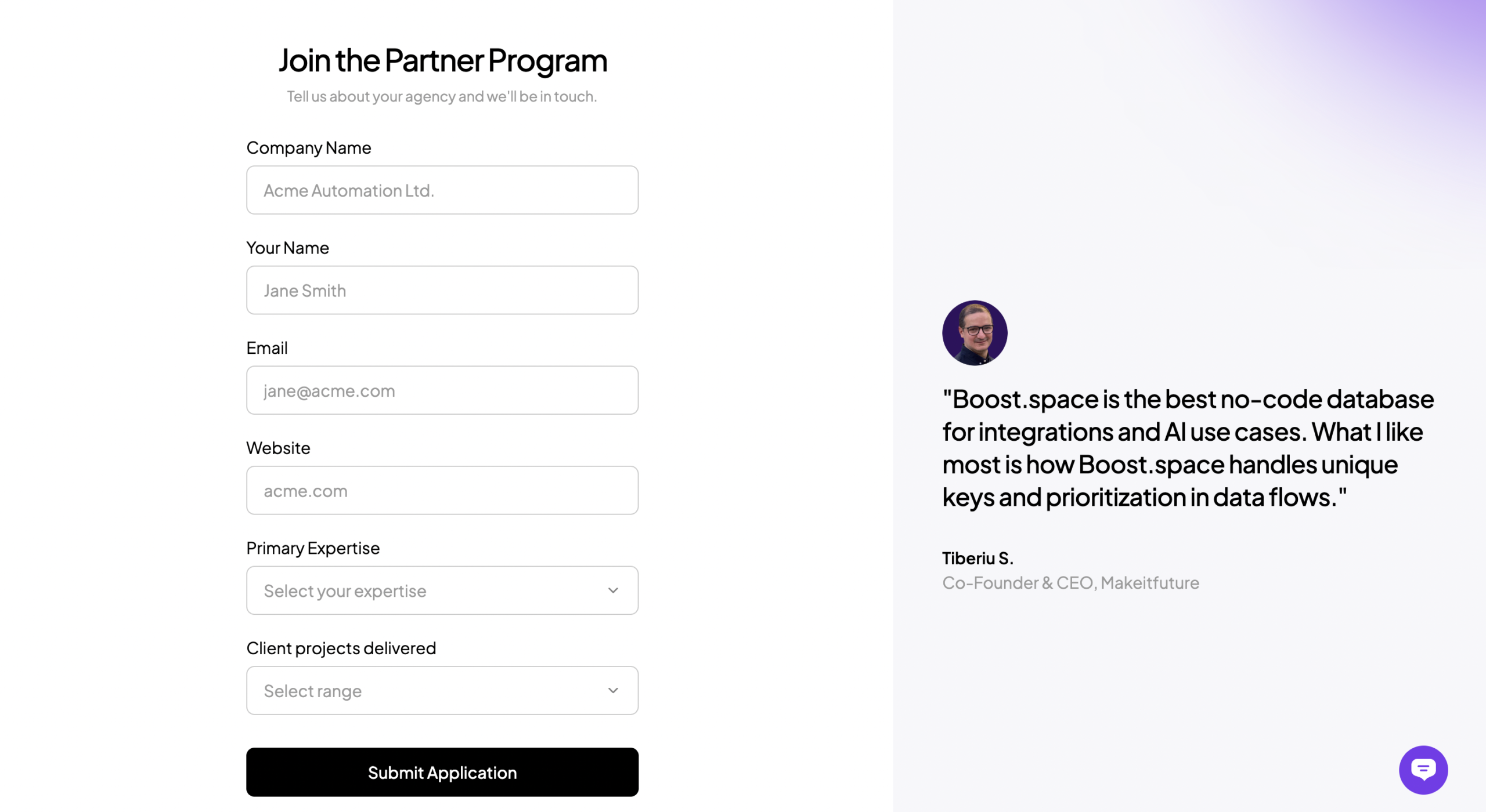 To become a partner, submit your application via the Boost.space website.