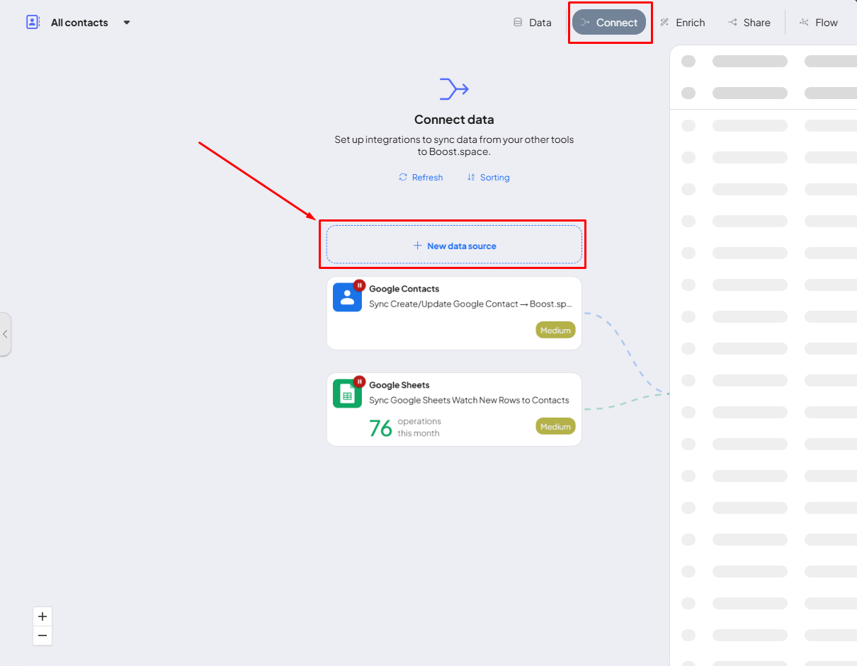 b) Connect – you see all the integrations that come into the Boost.space system from third-party applications.