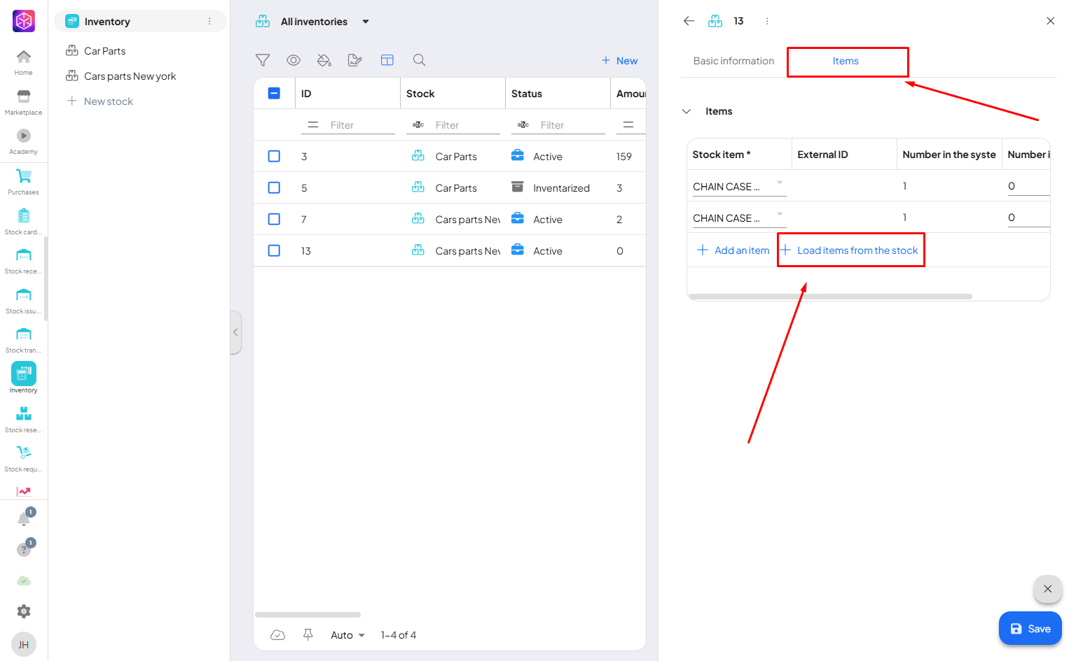 - Type – filtering by stock itemItems are rows in records (order/request/invoice/purchase...) type