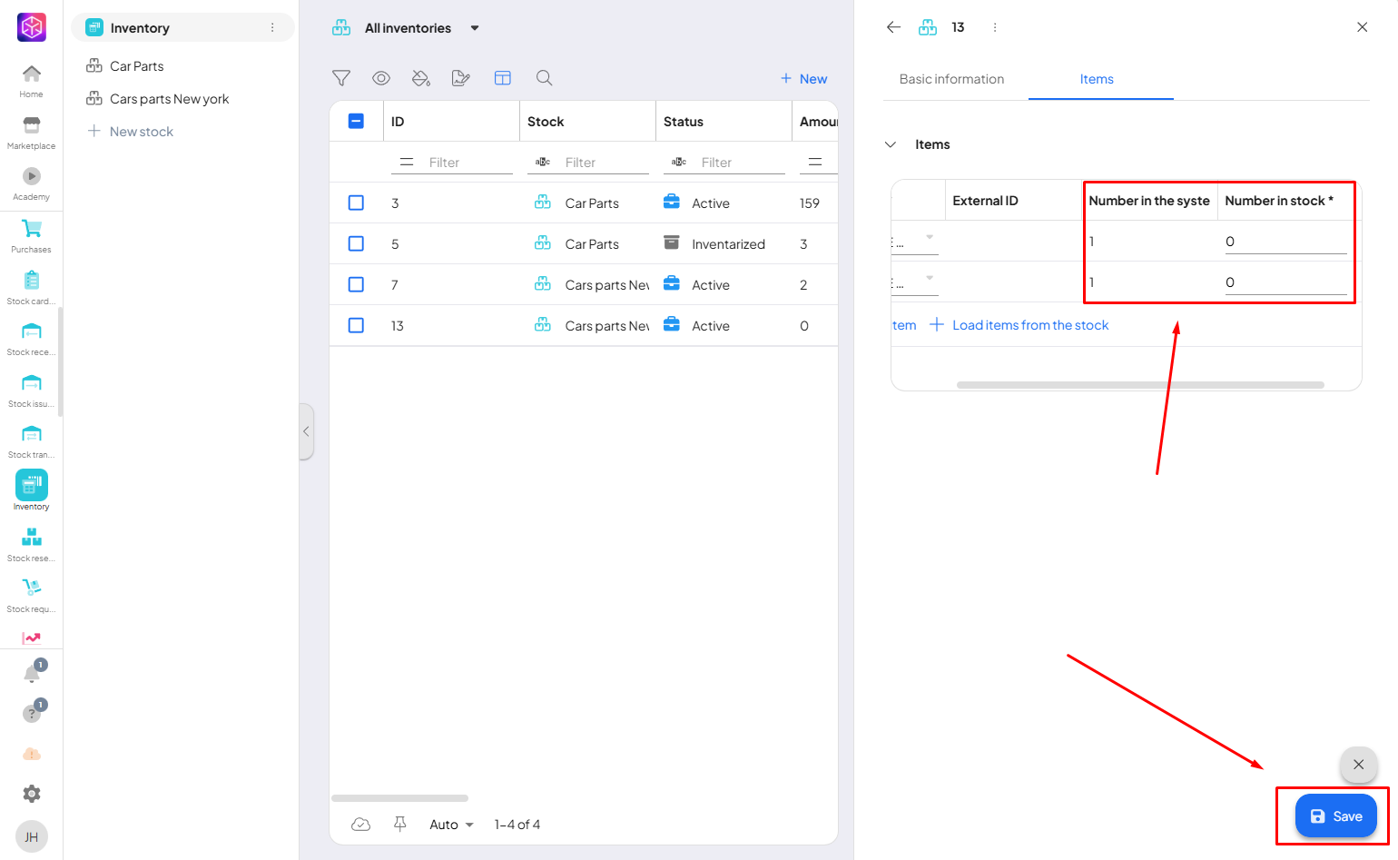 Inventory allows you to check and compare stock items in the Warehouses addonOne of the addons of the Boost.space system. With this addon, you can easily manage your business warehouses and inventory. with the actual quantity of stock itemsItems are rows in records (order/request/invoice/purchase...) in the warehouses.